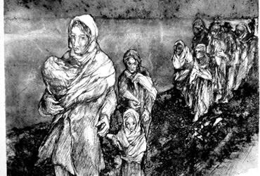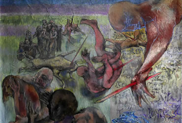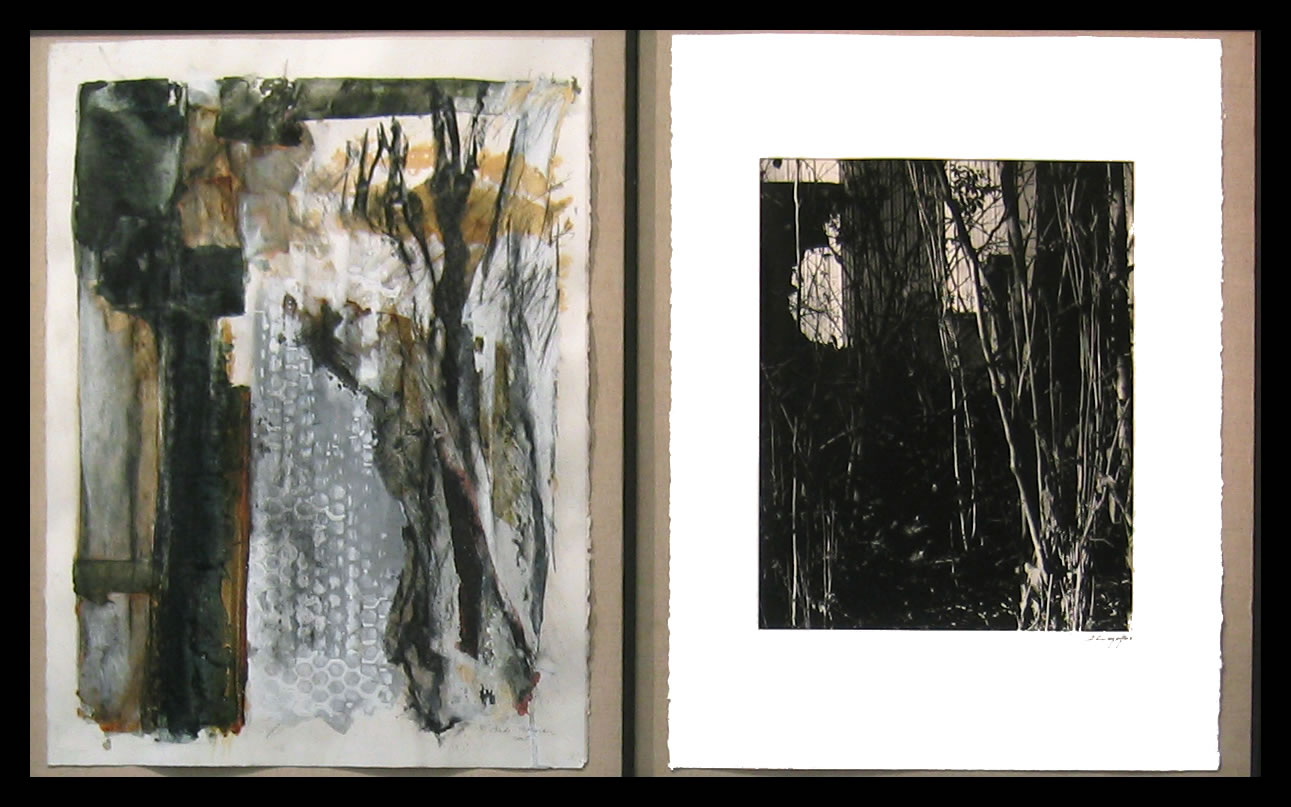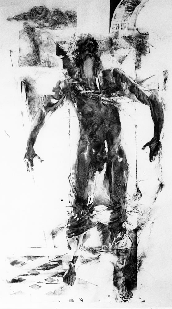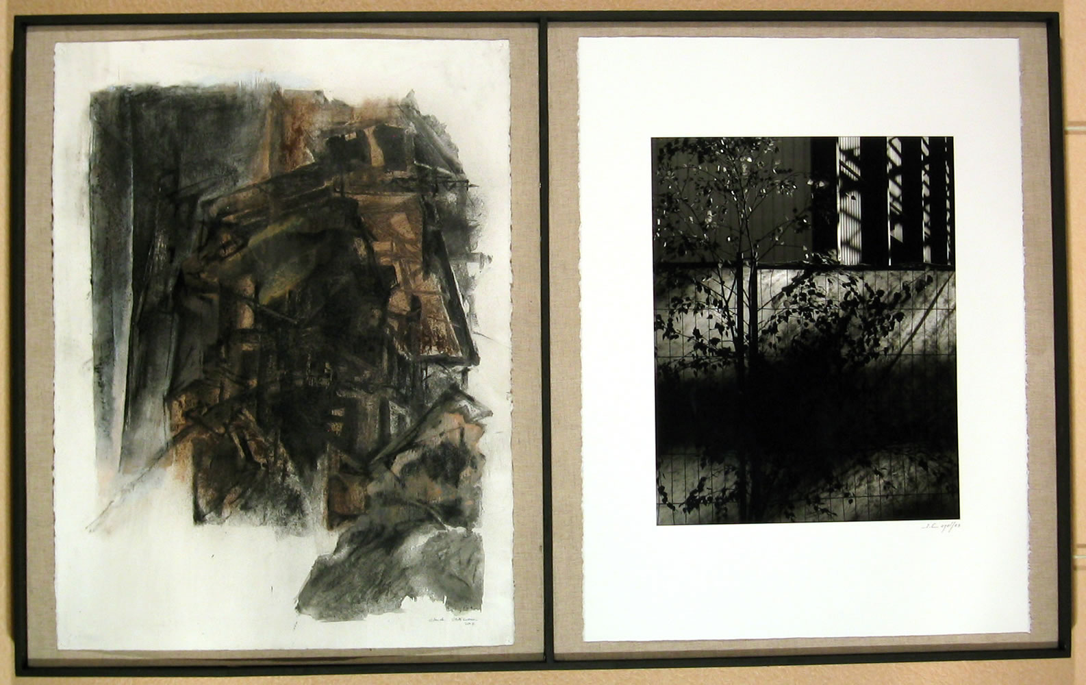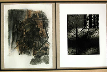 Une création donc commune mais non simultanée, dans laquelle les pinceaux de Claude Chaigneau adoptent une rigueur, des diagonales strictes, un jeu sur les reflets entre l’ombre et la lumière, en faisant entrer la couleur dans la vision en " voir et blanc " de Jean Cazelles. Ces traces liées à des lieux de mémoire industrielle sont transfigurées, voire défigurées par le traitement que propose Claude Chaigneau. Cette démarche pleine de promesses permet de découvrir une nouvelle facette du travail de l’artiste, tout en s’inscrivant tout naturellement dans ses recherches sur la disparition de la citation, l’épure de la référence, in memoriam l’histoire de l’art. Muriel Berthier, février 2005